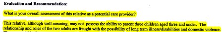 The most disturbing item on the report is the social worker stating: “The relationship and roles of the adults [Mr. Thompson and his partner] are fraught with the possibility of long-term illness/disability and domestic violence.”