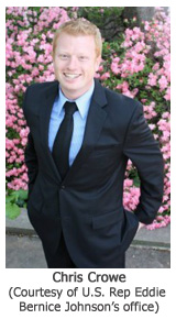 Crowe grew up in Gamaliel, KY and studied government and global securities at Johns Hopkins University before going to Capitol Hill to work as a staff assistant for Rep. Barbara Lee (D-Calif.). In 2006 he started as a staff assistant in U.S. Representative Johnson’s office, and last year he was promoted to legislative assistant.